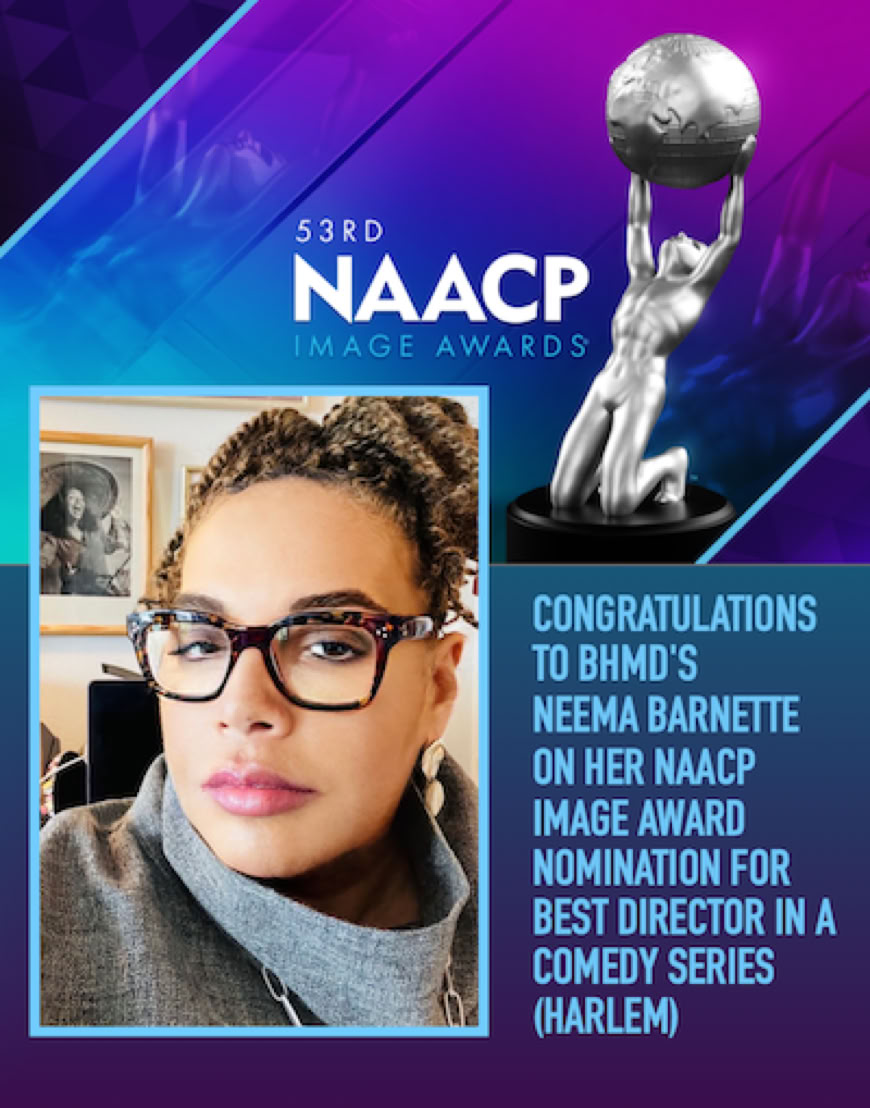 The 53rd NAACP Image Awards were announced last week in a virtual event on NAACP’s Instagram channel. We were ecstatic to find out that Black History Mini Docs’ very own executive producer Neema Barnette was nominated for Best Director in comedy series (Harlem). The hit series from Amazon Prime, created and executive produced by Tracy Oliver (Girls Trip) and stars actresses Meagan Good, Grace Byers, Shoniqua Shandai, and Jerrie Johnson.