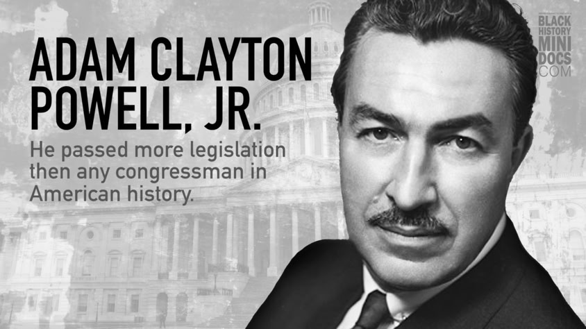 Adam Clayton Powell, Jr. (November 29, 1908 – April 4, 1972) was a pastor of the largest black church in America in his time, the Abyssinian Baptist Church in Harlem, New York City, and an American politician, who represented Harlem, in the United States House of Representatives (1945 – 1971). During his distinguished congressional career, Powell is credited as passing more bed-rock legislation then any other congressmen in American history, even up to today.